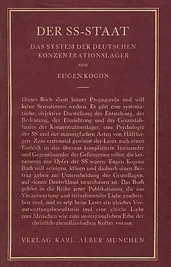 Eugen Kogon (2 February 1903 – 24 December 1987) was a German historian and Nazi concentration camp survivor. A well-known Christian opponent of the Nazi Party, Kogon was arrested more than once and spent six years at Buchenwald concentration camp. Known in Germany as a journalist, sociologist, political scientist, author, and politician, he went on to be considered one of the "intellectual fathers" of both West Germany and European integration. His 1946 book The Theory and Practice of Hell - The German Concentration Camps and the System Behind Them still stands as a basic reference on Nazi crimes (translated 1950).