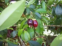 Eugenia involucrata, the Cherry of the Rio Grande, is an evergreen shrub native to Brazil which bears small fruits that are dark red to purple in color and have a sweet cherry-like flavor. They are hardy to 20 °F (−7 °C) when mature, though younger plants should be protected from frosts.[3]