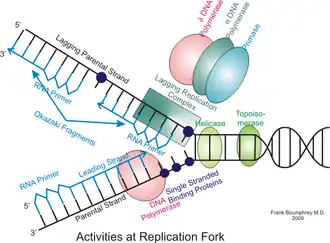 - ^ Burgers PM (February 2009). "Polymerase dynamics at the eukaryotic DNA replication fork". The Journal of Biological Chemistry. 284 (7): 4041–5. doi:10.1074/jbc.R800062200. PMC 2640984. PMID 18835809.