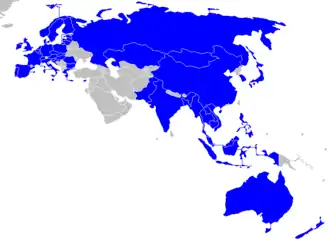 • Every two years since 1996 a meeting of most Asian and European countries is organised as the Asia–Europe Meeting (ASEM).