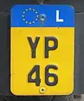 Until Brexit, UK registration plates could be issued in the common EU format. This format cannot be issued after the end of the transition period.[30] A "UK" sticker must be affixed at the rear of a vehicle with a registration plate displaying the EU emblem when driven abroad.[22] Note: Many cars also have EU flag on if issued pre-Brexit and cars can have EU flag only with the code "GB"; these plates are not valid for international use, a "UK" sticker must be affixed at the rear of the vehicle if driven abroad.[22]