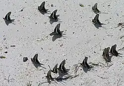 The butterfly is found in low situations, often resting in crowds on the sand at the edge of rivers. The larvae feed on Annonaceae species.