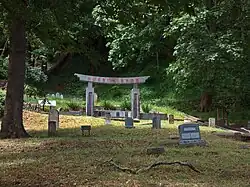 The cemetery is divided into five sections including the Grand Army of the Republic; the Freemasons; the main section; the "evergreen extension" added in the 1940s; and the Chinese section (due to the anti-Chinese sentiment, which led to the Chinese Exclusion Act of 1882).[3] The Chinese section of the cemetery allowed for traditional Chinese funerals featuring firecrackers, processions and a Chinese oven-onsite for food served.[1] The Santa Cruz Museum of Art and History oversaw the construction of a Chinese gate in 2014, to honor those buried.[4] The Grand Army of the Republic section, was created by a fraternal organization of the American Civil War veterans honoring those who fought to end slavery and supported the Union.[1]