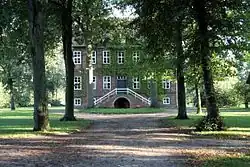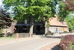 The first estate, Gut I, the so-called Sedelhof, lies east of the village street. It is bordered to the north and east by mill ditches, to the west by the millpond and to the south by the river Örtze. It is thus entirely surrounded by water and only accessible over a wooden bridge. Due to its good location it is thought to be one on the oldest estates in Eversen.[8] The estate was first mentioned in the records in 1424. In a deed of enfeoffment by the Duke of Lüneburg, a certain Carsten von Harling, amongst others, was enfeoffed a farm in Eversen. Because the enfeoffment was "from time immemorial" (von alters hero gehabt)[9] it can be assumed that Gut I had been in the possession of the Harling family from the end of the 14th century. The estate was one of the few in the Principality of Lüneburg that was furnished with a keep (Bergfried), or fortified tower. The present building dates from the year 1792, when the King's Council, Carl August von Harling, had a new manor house and stables built in timber-framed style.