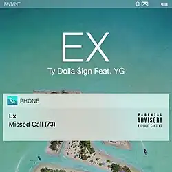 "Ex" is a song by American singer Ty Dolla Sign, released on October 6, 2017. It is the third single from his second studio album Beach House 3 (2017) and features American rapper YG.[1] Produced by BongoByTheWay, Hitmaka and Ty Dolla Sign, the song samples the remix of "Only You" by 112.[2]