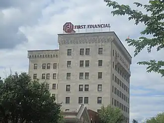 The Exchange Bank building, formerly the Lion Oil Headquarters, is a historic commercial building at Washington and Oak Streets in El Dorado, Arkansas. Built in 1926–27, the nine-story building was the first skyscraper in Union County, and it was the tallest building in El Dorado at the time of its listing on the National Register of Historic Places in 1986. It was designed by the Little Rock firm of Mann & Stern, and is an eclectic mix of Venetian-inspired Revival styles. It was built during El Dorado's oil boom, and housed the headquarters of Lion Oil.[2] It was included in the El Dorado Commercial Historic District in 2003.[3]