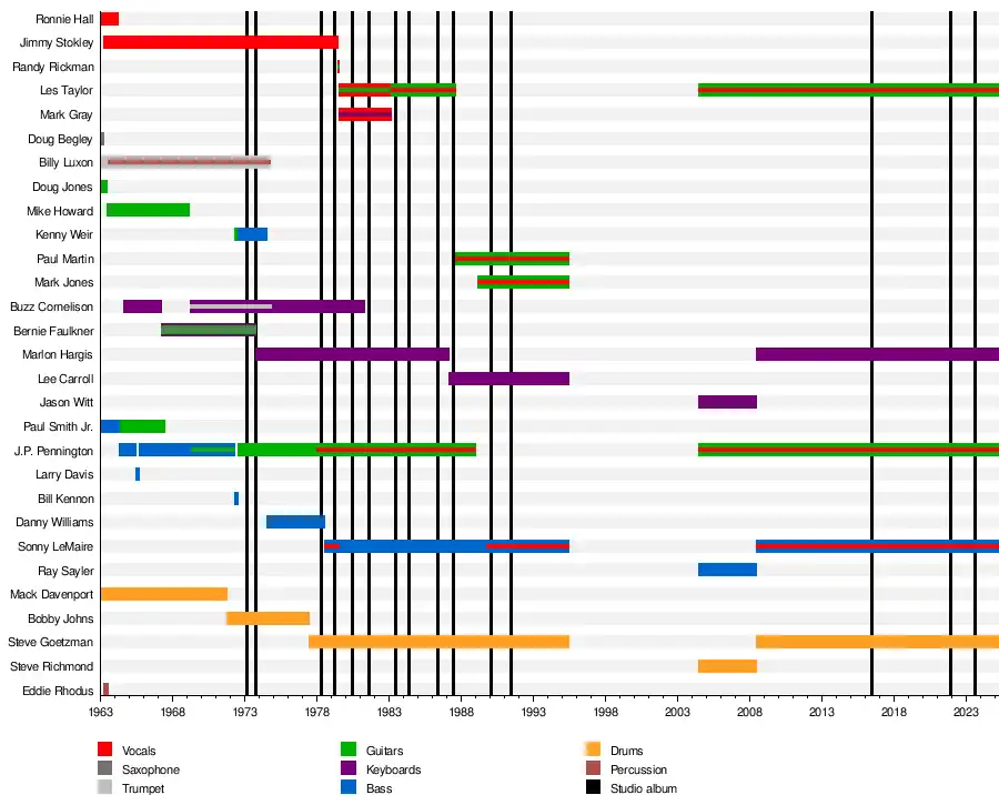 - Bobby Johns – drums (ca. 1971–ca. 1977)
