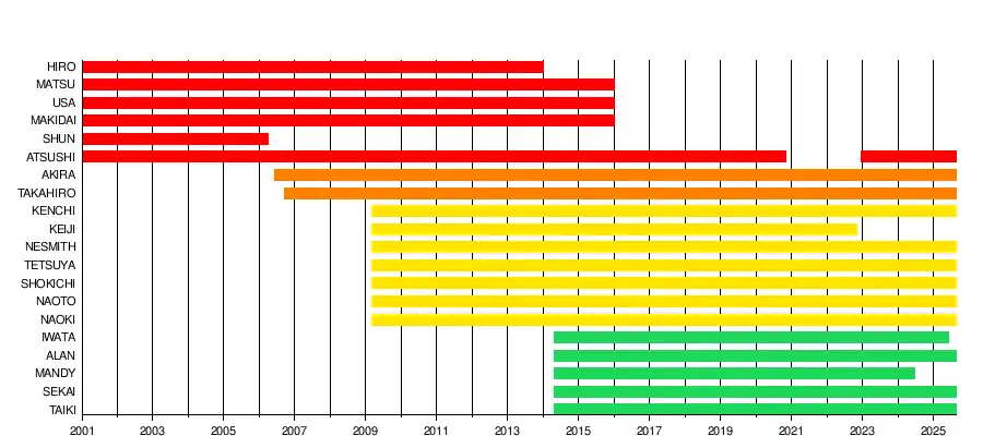 | Past members | Shun Keiji Kuroki Mandy Sekiguchi Takanori Iwata |