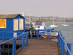 On the Exmouth side it departs from the ferry steps at Exmouth Marina. On the Starcross side it departs from Starcross Pier, adjacent to Starcross railway station on the Riviera Line.[1] The ferry operates on an hourly basis during the day, from Easter to October, and can accommodate cycles. The operators also run cruises along the Exe estuary and trips around Dawlish Bay.[2]