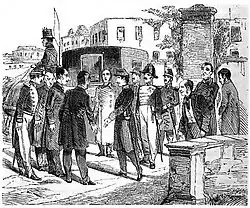 The neutrality of the English navy was confirmed during the following battle of Palermo, when Garibaldi, left almost without gunpowder, requested it in vain from the commanders of the war fleets moored off the coast of the city.[65] They were joined, as early as 12 May, by 200 Sicilian volunteers commanded by the Sant'Anna brothers. Their forces increased due to the subsequent landings of Sardinian troops in civilian clothes and the liberation of prisoners taken from the Bourbon prisons.[66][67]
