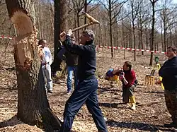 Experimental tree felling with reconstructed adzes of the Linear Pottery culture for the analysis of stress marks on the adze blades and ghost lines on the tree stump and the timber in comparison with marks on archaeological finds
