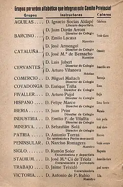 - ^ "Constitución Comité Provincial de Boy-Scouts de Barcelona" (in Spanish). La Vanguardia. 1912-11-07. p. 4. Retrieved 2019-01-04.