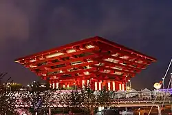 189 of the world's 196 nations were represented at Expo 2010, either in stand-alone pavilions or within larger pavilions.[18][19] The three largest national pavilions were the China Pavilion, the Africa Pavilion, and the Pacific Pavilion.[19]
