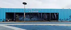 The overall budget for the Canadian pavilion was 45 million Canadian dollars (US$43.57 million).[30] Cirque du Soleil designed the concept for the pavilion[29] and also created public performances, organized cultural programs[29] and developed strategic corporate alliances for the pavilion. The exterior of the pavilion was covered in polished steel and cedar.[29] The pavilion was anchored by an open public square and surrounded by three large, wooden, curved structures.[28] The square was a performing area, with performances by Cirque du Soleil.[28] Part of the pavilion's exterior walls were covered by a special kind of greenery and rainwater was collected by a drainage system for use inside the pavilion.