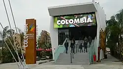 Theme Concept: Mauricio Cárdenas, Studio Cárdenas; Architecture Concept: Manuel Villa Arquitectos; Architectural Design: Mauricio Cárdenas, Studio Cárdenas[22] | The Colombia Pavilion theme was "Naturally Sustainable", a concept that was experienced throughout the exhibition of the five thermal floors the country has: hot, temperate, cold, moorland and perennial snow. The possibility of having a stable temperature during 365 days, allows the country to be a constant food producer, a breadbasket of the world. The archietecture of the pavilion was inspired in Colombia's geography having 4 modules of different height and extension.[23] | Colombia Pavilion received second place in the category "Best heritage for future generations" special prize given by the World Association of Agronomists at the Class Expo Pavilion Heritage Award.[7] | |