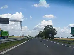 S8 runs through Warsaw and is part of its network of bypass roads. Various fragments were completed between 2010 and 2015.[4][5] It was constructed mostly as an upgrade of the city's existing inner highways. As such, it might be considered not to fully meet the definition of a bypass as it serves both the transit and local district traffic at the same time. In effect, large traffic jams form on this section every day in the peak hours. In the most recent general traffic measurement conducted in 2020 and 2021, S8 in Warsaw recorded the annual average daily traffic of 198'000 vehicles, making it the most busy highway section in Poland.[6]