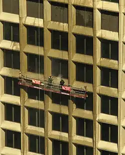 Exterior cleaning is the process of cleaning a building's exterior part including the restoration of hygiene or removal of litter and/or dirt on the outside of the building. It is not to be confused with interior cleaning, the act of cleaning inside a building. Exterior cleaning draws on aspects of environmental care, architecture preservation, and public safety, in addition to traditional cleaning. In some jurisdictions, exterior cleaners must be licensed to practice, e.g., window cleaners require a license to operate in Scotland.[1][2]