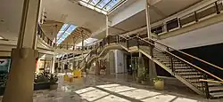 In addition to the anchor stores, the mall has dozens of smaller stores.[36][2] The mall also contains a food court with 13 spaces. The mall is shaped as a square, with the first floor looping around the southern half of the mall and the second floor looping around the whole mall. The former Macy's is located in the center of the square, with the former Sears at the northwest corner, the food court at the northeast corner, Boscov's at the southwest corner, and Round One Entertainment at the southeast corner.[36]