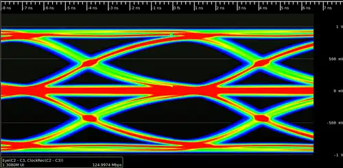 Eye pattern of eight million UIs (unit intervals) of a 1.25 Gbit/s signal