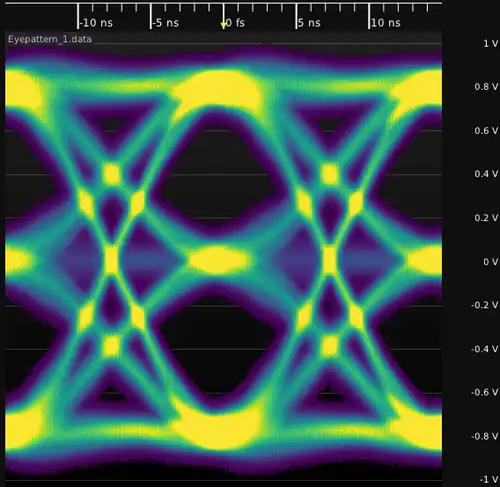 The eye pattern of a PAM signal should consist of N clearly distinct levels (depending on the PAM order, for example PAM-4 should have four levels and PAM-3 should have three). The overall shape should be symmetric about the horizontal axis and the spacing of all levels should be uniform.