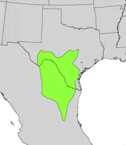 The contiguous range of Texas kidneywood covers the three neighboring Mexican states of Coahuila, Nuevo Leon, and Tamaulipas in northeast Mexico, the Rio Grande valley, from Big Bend southeastwards, but not the coastal Gulf of Mexico areas, only 25–50 miles inland. Part of the range extends southwards into extreme northern San Luis Potosí,[3] and some isolated locales towards east-central and southern Texas.