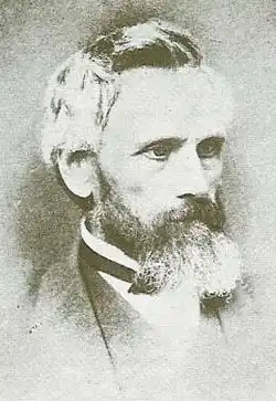 Although Meeker had not had a dog in his wagon in 1852, he knew that people liked them, and sought to add one to his crew.[63] Jim, a large, friendly collie who became an expedition member and Meeker's companion for the next six years, had belonged to one of Meeker's neighbors, a Mr. James. Meeker was impressed by the way Jim drove James' chickens out of the area where the family grew berries, by moving slowly. Five dollars to one of James' children secured the purchase.[64] Some of Meeker's friends tried to talk him out of the trip; one local minister warned against this "impracticable project", stating that it was "cruel to let this aged man start on this journey only to perish by exposure in the mountains".[65]