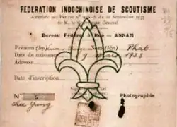 1930s membership card from the Annamese branch of the Fédération Indochinoise des Associations du Scoutisme