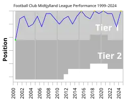 In 2000, Midtjylland were promoted to the top-flight Danish Superliga after a season in which the team had gathered more points than any other team in the history of the first division.