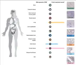 In humans, FHAD1 is expressed in testis, fallopian tube and uterine tissues in females, nasopharynx and bronchi of lungs based on studies found on the Human Protein Atlas.[9] NCBI's EST Profile also showed that FHAD1 is highly expressed in the testis, with some expression in the trachea and esophagus. In mice, the gene was also expressed in the testis, along with the pituitary gland, lung and brain.