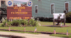 Many townspeople state that Fairchance got its name in the early days of transportation. The story goes that travelers from Morgantown, West Virginia, who made it to the borough by 4:00 P.M. had a "fair chance" of making it to Uniontown before sundown. Another explanation cited in the book Fairchance Through the Years, compiled by the Fairchance Centennial History Committee, is that Fidelio H. Oliphant, who operated iron furnaces in the area, went to a bank in Uniontown to borrow money with the assurance that he had a "fair chance" of paying it back.