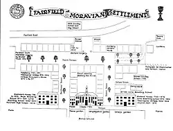 The architect of the settlement was a member of the Moravian Church, Brother John Lees, from Clarksfield, in Oldham.[4] There is some evidence that Br Lees may have sold two coal mines he owned to pay for building Fairfield. Other finance came from Moravian congregations in England, Germany and America. The total cost was £6,000.[5]