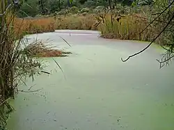 The freshwater marsh was formed by massive land movement along the Rodgers Creek Fault. The two ponds on the property are manmade, having been created in the early 20th century. These wetland communities are important habitat for many species including sora and Virginia rails, western pond turtles, and the federally listed endangered Red-legged Frog. Moreover, natural seeps feed these locations and the outcome is climax vegetation that has stabilized. Turtle Pond has a layer of duckweed on the water surface that is consumed by a variety of fauna. Riparian zones of Copeland Creek have a very high percentage population of California bay laurel, but also provide habitat for a rich variety of amphibians, newts and other fauna. The Pacific giant salamander, one of the largest known species of salamander is observed hunting for prey in Copeland Creek. Other amphibians seen in riparian habitats include the Pacific treefrog, Hyla regilla, Rough skinned newt, Taricha granulosa, and California slender salamander, Batrachoseps attenuatus. A number of plants are particular to the deeply shaded riparian zone including snowberry and the uncommon California ginseng, Aralia californica.
