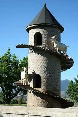 Cyril's son, Charles, joined Fairview in 1978, after completing his winemaking studies at Elsenburg agricultural college. In 1981, Charles built Fairview's goat tower.[1]