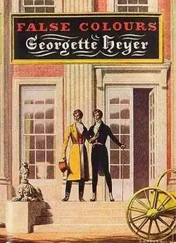 False Colours is a Regency romance by Georgette Heyer, published in 1963 in the UK by The Bodley Head and in 1964 by E. P. Dutton in the US.[2] The novel is set in 1817,[3] and concerns a young man who must temporarily impersonate his missing twin brother and the complications brought in the wake of this deceit. In British English, the term 'under false colours' refers to the use of a flag to which one is not entitled as a tactic for purposes of deception, and so by extension to any dishonest manoeuver.[4]