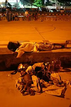 Family Homelessness in Asia is evident throughout the continent due to a combination of environmental, political and social factors that limits an at risk's family access to suitable housing.[13] Countries in Asia and the Pacific such as India and Cambodia have above normal rates of family homelessness, partially caused by the exacerbated poverty existing in these countries.[13] According to the Homeless World Cup Foundation, 73 million families in India lack access to suitable housing due to lack of government programs to elevate family homelessness, as well as the widespread poverty evident in the country.[15] Countries in Asia such as India, often have weakened government support for families struggling with homelessness due to the belief in a class/caste system that discourages those in homelessness as it does not align with the social beliefs held by the government and a portion of the population.[13] Moreover, environmental conditions are also influencing in the homelessness status of families in Asia due to the difficulties associated with the climate.[15] Countries such as Cambodia are highly susceptible to natural disasters such as monsoons and droughts due to the moist and tropical climate.[15] The destruction caused by these natural disasters can displace families due to a lack of shelter and can elevate the pre-existing poverty as plains and crops that are used for agricultural production are often damaged during natural disasters.[15]