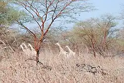 The whole territory of the Far North Province was once home to most of Africa's iconic species: antelope, jackals, cheetahs, crocodiles, elephants, giraffes, heron, hippopotami, hyenas, leopards, lions, monkeys, warthogs, and others. Centuries of human habitation have today forced these species back to a few protected areas and national parks. Foremost among these is Waza National Park (Parc National du Waza), which occupies 1700 km2. The park was created in 1968, and has since grown to be one of Cameroon's largest tourist attractions.[10] Kalamaloué National Park (Parc National de Kalamaloué) is a smaller protected area, which protects 45 km2 in the narrow neck of land separating Nigeria and Chad at the province's northernmost reaches.[11] This park protects those species that routinely traverse Cameroon in their yearly migrations. Mozogo Gokoro National Park houses a diverse number of monkey and reptile species within 14 km2.[12]