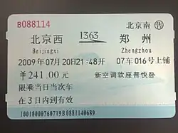 Notice on the Deluxe Soft Sleeper Ticket Price of the CRH (Ministry of Railways Transport Bureau Telegram No. [2009] 108) - ^ 中国铁路总公司. "中国铁路12306-广深港高速铁路跨境旅客运输组织规则" (in Simplified Chinese). Archived from the original on 2022-05-13. Retrieved 2019-05-14.