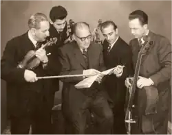 In 1952 he returned to Baghdad, where he taught theory of music and harmony at the Fine Arts Institute.[17] Together with his colleagues he established the Baghdad Philharmonic Society and was a member of a Chamber group composed of Professor Julian Hertz, Piano; Professor Sandu Albu, 1st violin; Vartan Manoogian 2nd violin; Farid Allawerdi, Viola; Professor Andre Theurer, Cello. He continues to perform with the Chamber Group until 1959.[18][17]
