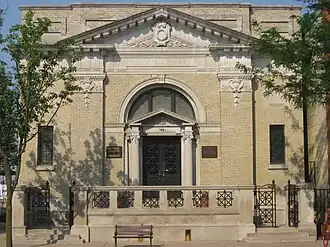 Farmers Club is a historic clubhouse located at Seymour, Jackson County, Indiana. It was built in 1914, and is a 1+1⁄2-story, Beaux-Arts style brick building with Indiana limestone embellishments. The main entrance features flanking Ionic order columns, round arch transom, and projecting piers. The building houses the local chamber of commerce.[2]: 2