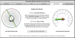 The Farnsworth–Munsell 100 Hue Color Vision test is a color vision test often used to test for color blindness. The system was developed by Dean Farnsworth in the 1940s and it tests the ability to isolate and arrange minute differences in various color targets with constant value and chroma that cover all the visual hues described by the Munsell color system.[1] There are several variations of the test, one featuring 100 color hues and one featuring 15 color hues. Originally taken in an analog environment with physical hue tiles, the test is now taken from computer consoles. An accurate quantification of color vision accuracy is particularly important to designers, photographers and colorists, who all rely on accurate color vision to produce quality content.