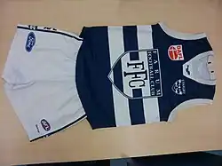 When the club was formed as the Lions in 1994, they decided to use the jumpers worn by Fitzroy Football Club in the AFL. This was for two reasons: firstly the colours more or less matched those of Farum BK, the local soccer club, and it was believed that that might have gotten them some financial help from the club later, and secondly, the Fitzroy jumpers had the lettering FFC on the front, matching the name Farum Football Club. Later, newer Lions jumpers were used, and these had a lion on the front, with the name Farum underneath. In 2002 Farum Cats changed their moniker from Lions to Cats, and got a shipment of jumpers from Geelong Cats. They were greyish silver with the GFC shield of the Geelong Football Club on Farum Cats lungs and on the stomach. These were used during Farum's greatest reign in the DAFL, Cats when they won back-to-back-to-back premierships. At the time, the club also used a modified version of the GFC shield, spelling out FFC instead. In the 2008 season, the team sold the old jumpers to the players, and started using a new shipment of jumpers from Geelong. These were mainly large to extra large-sized jumpers, with long sleeves in the 2006–07 style Cats clash jumper. Many of the players did not, however, like these jumpers, as sleeveless jumpers were preferred by many, and the few sleeveless jumpers were pretty much always used. These were older, homestyle Cats jumpers from Fila while the others were of the brand Slazenger. In the 2010 final series the team started using their new original Farum Cats jumpers, after wearing different Geelong Cats jumpers since 2002. Their kit is mainly dark blue, with two thick white hoops, and the old FFC shield on the front, with the new one on the upper left, and the old (then current) DAFL shield on the upper right. The only cooperate name visible is Sekem, the manufacturer.
