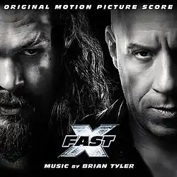 Fast X (Original Motion Picture Score) is the film score album, featuring the original music composed by Brian Tyler, who called it as his "most complex" score in the franchise.[28] As he described the antagonist Dante Reyes (Jason Momoa) as "relatable" and "charming",[29] for his theme, he used high strings such as the harp, and bass music with modern instruments as "it gives you this feeling that you can’t look away. There’s a sense [in his music] of empathizing with him, and why he becomes this villain."[30] He also used an odd chord, describing it as "every time it happens and cycles around, that chord goes inside your brain to understand where the music is supposed to go. It’s like a dopamine hit, that’s different and reminds you there’s something off about him."[30] The score was released by Back Lot Music on June 2, 2023.[31]