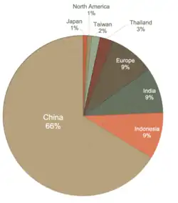 Viscose is mainly manufactured in Southeast Asia, with China representing 66% of production in 2015.[45] These manufacturers also dump untreated wastewater containing a multitude of chemicals; one major chemical is carbon disulphide, a solvent that is linked to severe medical conditions.[46] Upon touch, it can burn through skin and cause severe eye damage.