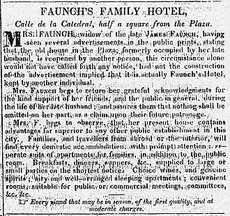 The Faunch Hotel was a prestigious English hotel, is considered one of the most famous in Buenos Aires during the first half of the 19th century.[2]