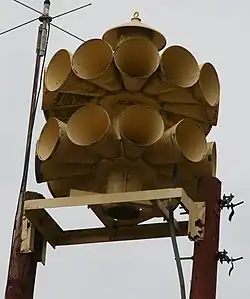 The Federal Signal 3T22 and 2T22 are dual-tone, mechanical outdoor warning sirens made by Federal Signal Corporation (formerly Federal Sign and Signal Corporation) from 1952 through the early 1990s. Both have a very recognizable design, with a ten-port rotor (chopper) on the bottom with ten cones (horns) and a 12-port one on top with twelve cones.