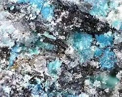 Fehrite is a hydroxyl-bearing, hydrated, copper-magnesium sulfate mineral approved by the International Mineralogical Association as a new species in 2019[1] and formally described in 2021 from specimens obtained from the Casualidad mine, located near Baños de Sierra Alhamilla, in Pechina (Almería), Spain, which is consequently the type locality. The name is a tribute to Karl Thomas Fehr, Professor of Mineralogy at the Ludwig Maximilian University in Munich (Germany).[2]