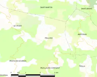 Feilluns is located in the canton of La Vallée de l'Agly and in the arrondissement of Prades.