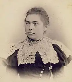 She was tutored at home before attending the Marinskaja Girls' Gymnasium in Kaunas in 1885–89. She was expelled from the school for inciting five other girls to disobey a new requirement to pray in an Eastern Orthodox Church, but after much difficulty managed to gain admission to Vilnius Girls' Gymnasium and graduate in 1890.[1] For a year, she studied Polish history and French language at the secret "Flying University" in Warsaw.[3] Upon her return, she worked at a bank in Ukmergė with her father until his death in 1898.[1] This experience was particularly useful later in life when she organized finances of various organizations.[2] In 1899, she married engineer and childhood friend Jonas Bortkevičius (1871–1909). He was not of noble birth and her family disapproved the marriage.[1] The newlyweds moved to Vilnius, where they became involved in public life. She studied the Lithuanian language and became passionate about its revival.[3]
