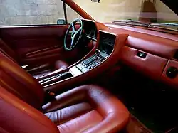 Towards the end of 1982, the 400i was updated. New camshaft profiles and exhaust headers raised engine power to 315 PS (232 kW).[12][13] The interior was significantly revised, gaining different upholstery, door panels, centre console and new electronic switchgear. On the exterior a narrower grille left the rectangular foglights exposed; the venting on the engine bonnet was changed from silver to body-colour. New, more elegant wing mirrors were fitted, bearing a small Ferrari shield. Around the back the tail panel was body-coloured instead of matte black, and foglamps were fitted in the bumper. Lower profile Michelin TRX tyres were adopted, on metric sized wheels. A total of 1305 examples were produced, 883 Automatics and 422 GTs.[10][11]