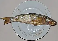 Fesikh (Egyptian Arabic: فسيخ, romanized: fesīḵ, pronounced [fɪˈsiːx]) is a traditional Egyptian dish. It is consumed primarily, though not exclusively, during the Sham el-Nessim festival, a spring celebration that traces its origins to ancient Egyptian times and is observed as a national holiday in Egypt. Fesikh consists of salted, pickled, fermented and dried gray mullet of the genus Mugil, a saltwater fish that lives in both the Mediterranean and the Red Seas.[1] In western Egypt, whitefish is used as an alternative.